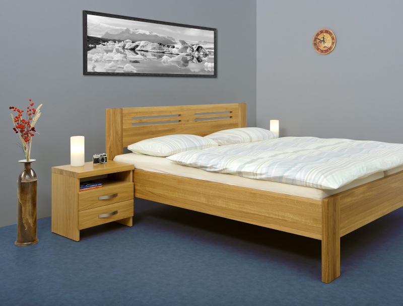 Dvojlůžko Merkur buk čelo č.5 barva šedá. Příslušenství - noční stolek Merkur se dvěma zásuvkami. Koupit