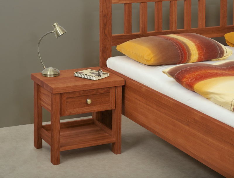 Dvojlůžko Orion smrk čelo č.3 barva třešeň. Příslušenství - noční stolek Orion s nikou a dvěma zásuvkami. Koupit