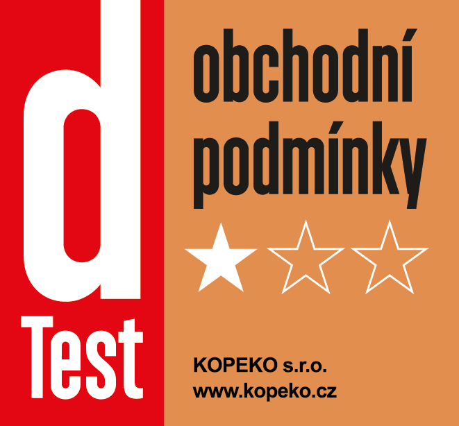 Tyto obchodní podmínky byly vypracované dTest, o.p.s. Prodejce jejich převzetím dobrovolně vstoupil do systému „zvyšování kvality obchodních podmínek“, jehož cílem je zpřehlednění a zjednodušení obchodních podmínek, zlepšení vztahu mezi spotřebitelem a podnikatelem a jasná garance obchodních podmínek pro kupujícího - spotřebitele. Udělená značka dTest obchodní podmínky má platnost od 23.01.2026 do 22.01.2027. V případě dotazů k těmto obchodním podmínkám či při nespokojenosti s jednáním provozovatele nás můžete kontaktovat telefonicky na poradenské lince dTest: 299 149 009, elektronicky vložením dotazu na www.dtest.cz/spotrebitelska-poradna nebo písemně na adrese: dTest, o.p.s., Černomořská 419/10, 101 00 Praha 10.